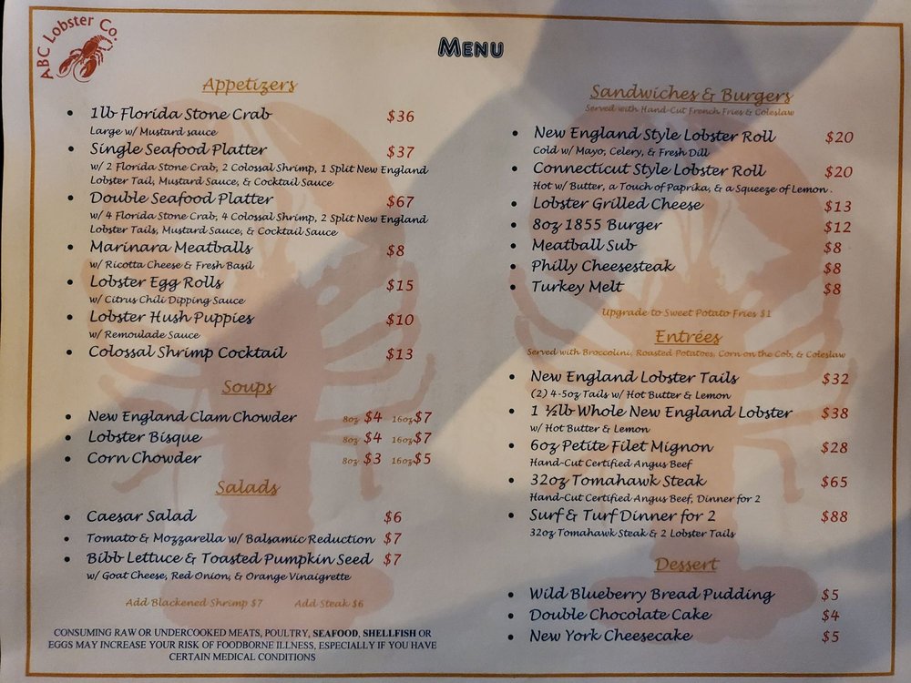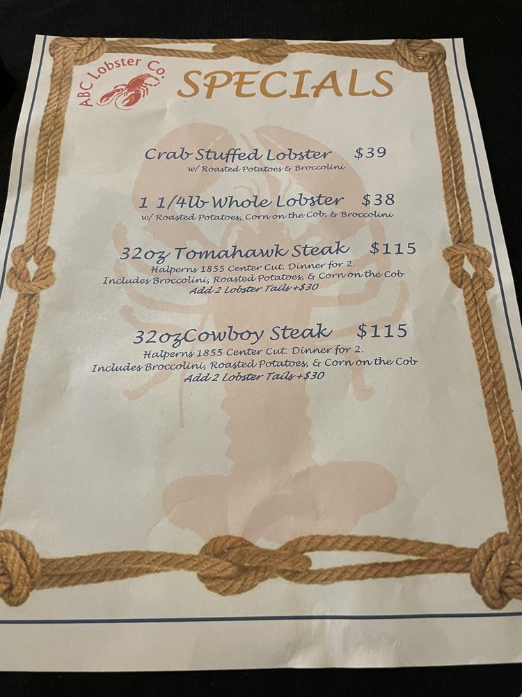 ABC Lobster Menu